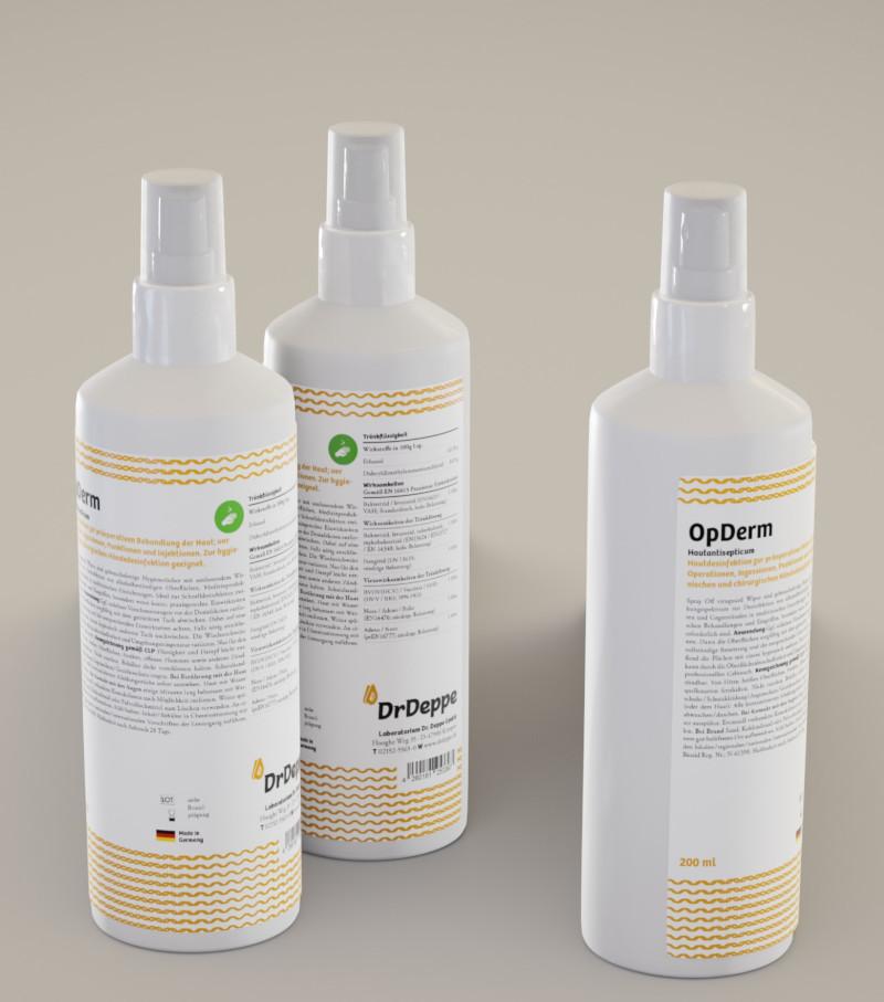 Hautdesinfektion: Hautpartien unverdünnt mit OpDerm einsprühen oder betupfen. Einwirkzeiten beachten. Während der Applikation Hautpartien